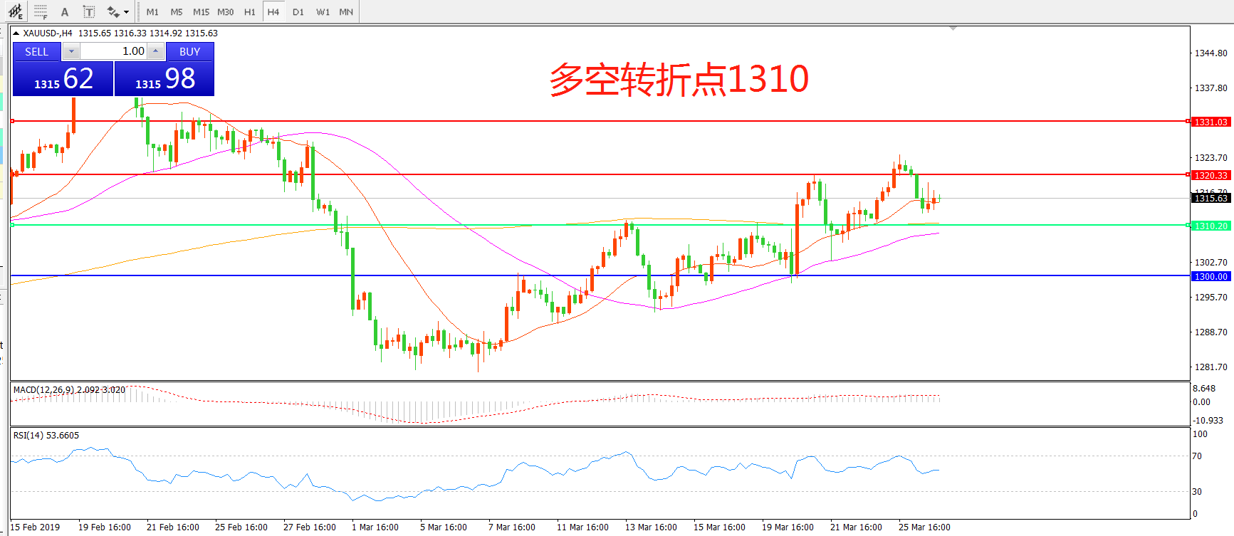 交易策略:在1310.00之上看涨,目标1320.00   1330.00