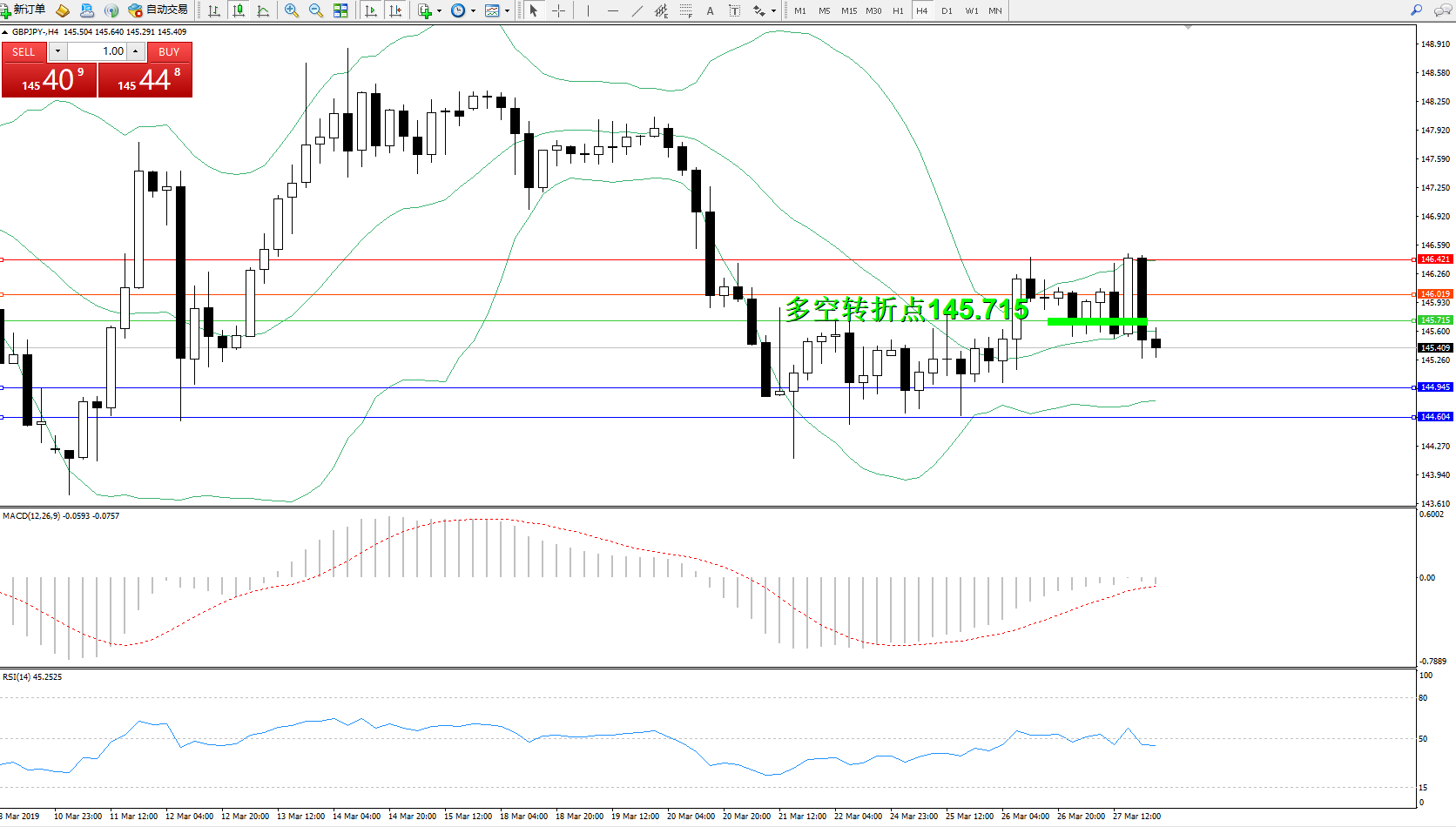 交易策略:145.715下方看跌,目标144.945144.604