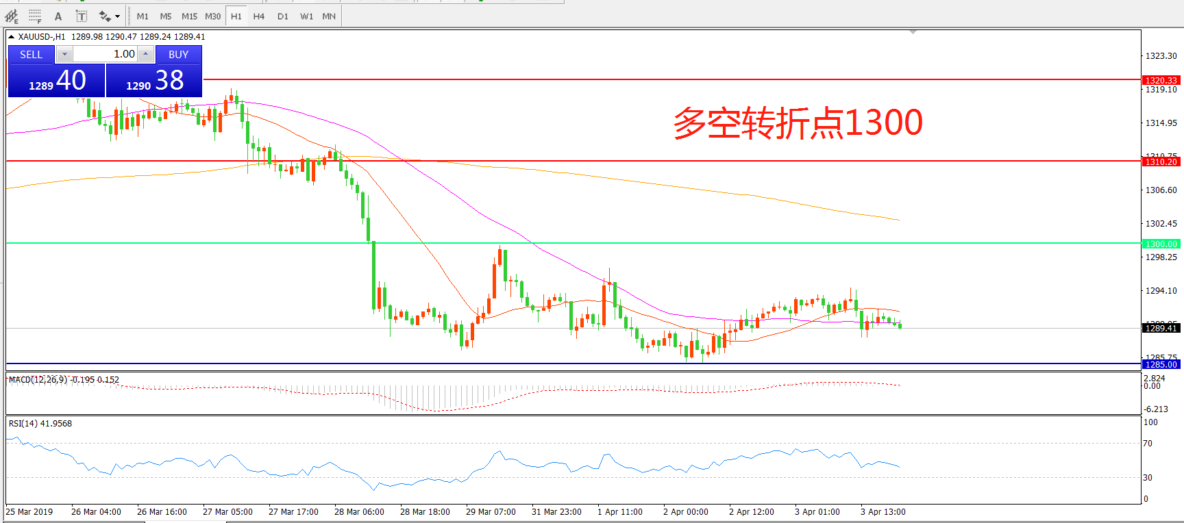 多空转折点:1300.00