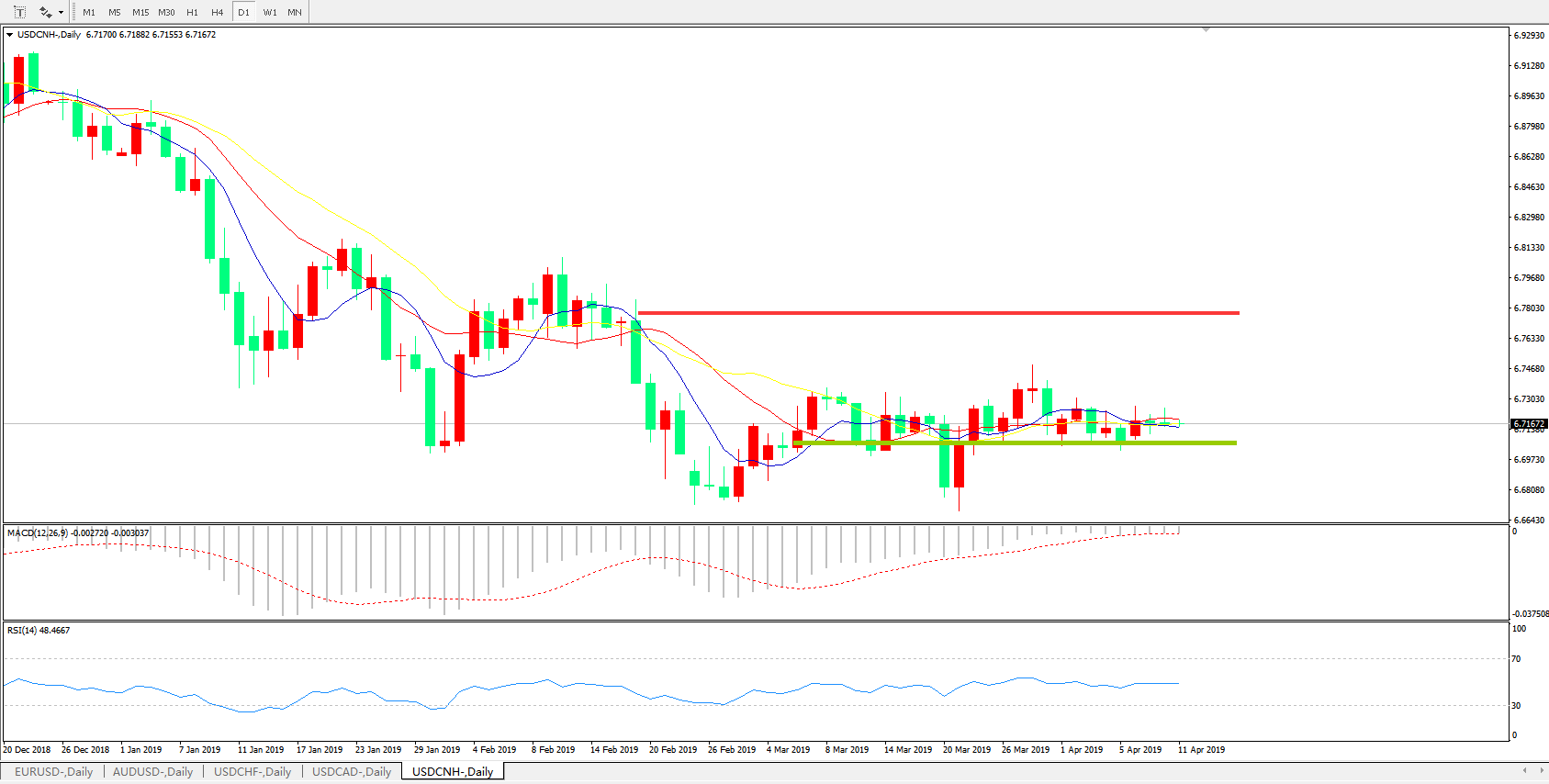 备选策略: 6.6990之下,看跌,目标价位为6.6730,然后为6.6325