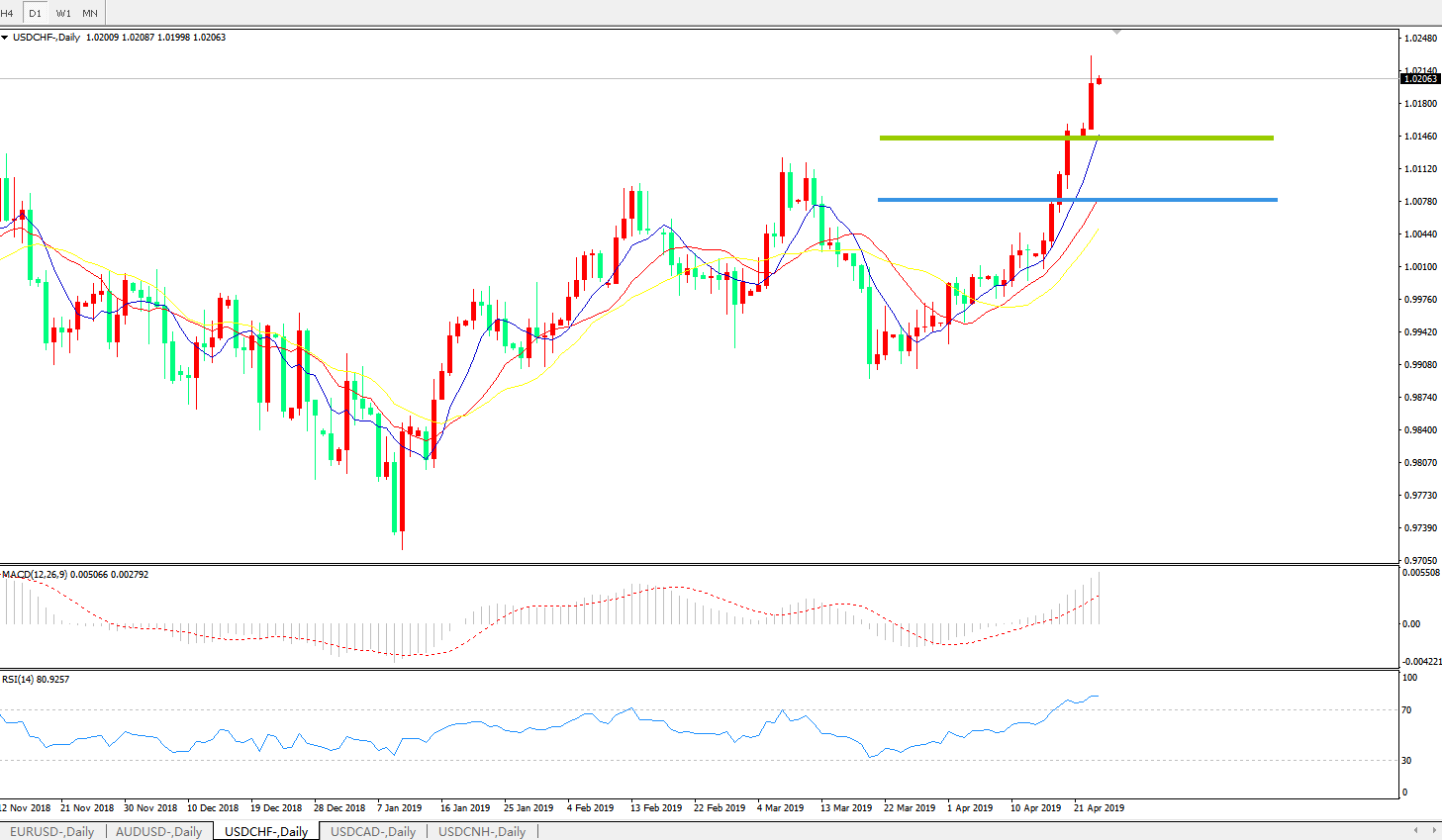 美元兑瑞郎USDCHF 日线图: