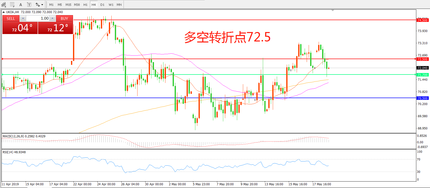 多空转折点:71.70