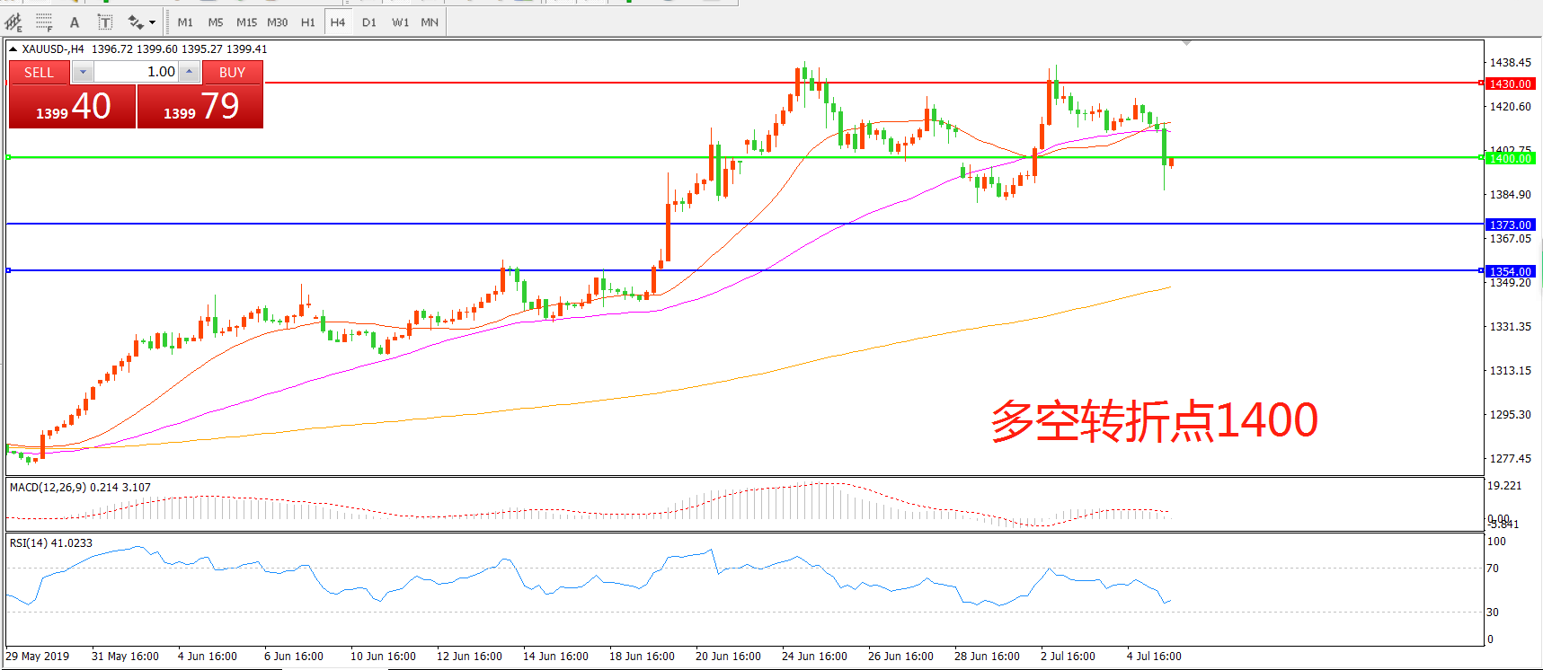 备选策略:在1400.00之下看跌,目标1373.00     1354.00