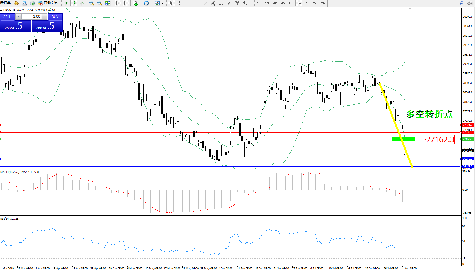 恒指HK50 ——4小时K线图显示: