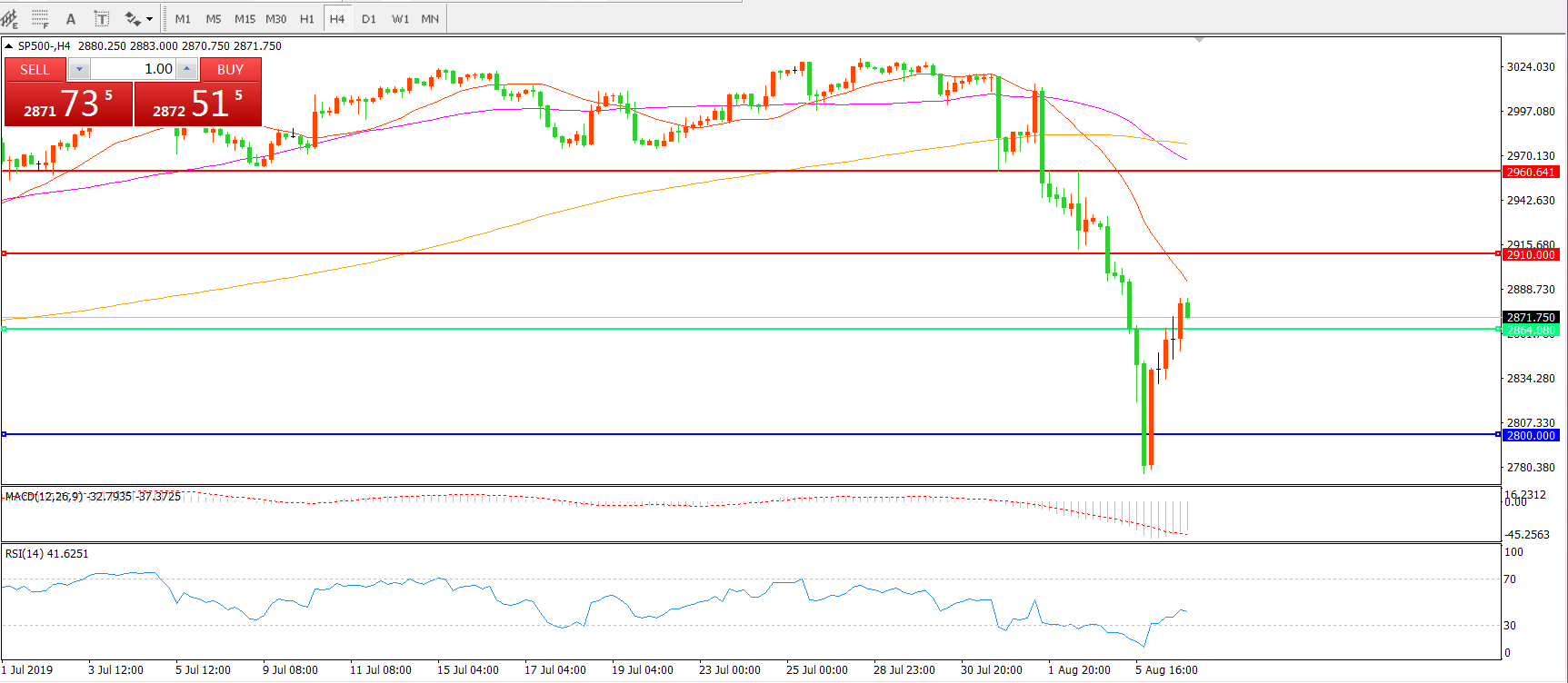 标普5000 SP500 4小时图