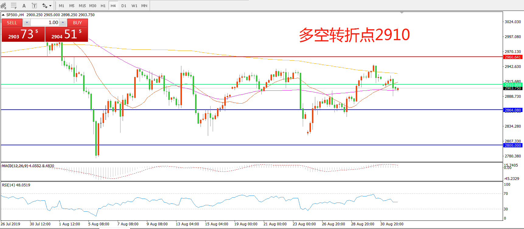 备选策略:在2910.00之下看跌,目标2864.00    2800.00