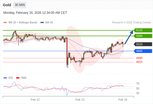 在 4985 之上,看涨,目标价位为 5080 ,然后为 5115 。