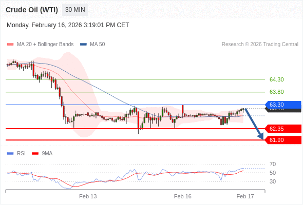在 63.30 之下,看跌,目标价位为 62.35 ,然后为 61.90 。