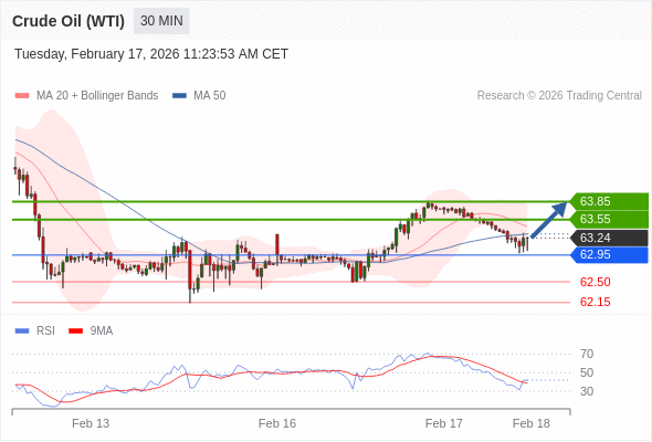 在 62.95 之上,看涨,目标价位为 63.55 ,然后为 63.85 。