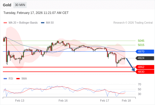 在 4970 之下,看跌,目标价位为 4862 ,然后为 4830 。