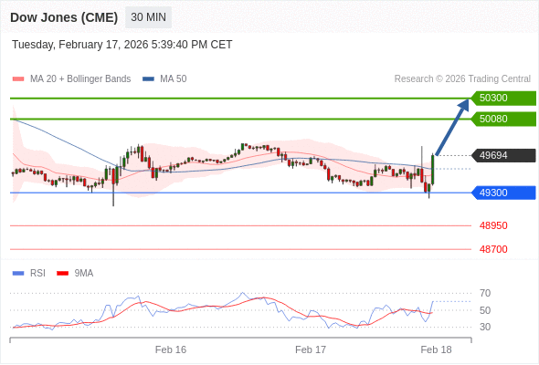 在 49300 之上,看涨,目标价位为 50080 ,然后为 50300 。