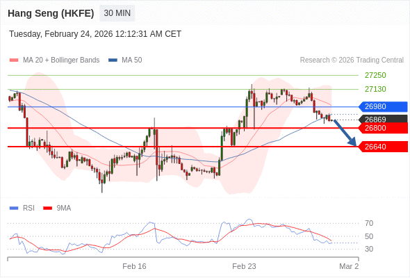 在 26980 之下,看跌,目标价位为 26800 ,然后为 26640 。