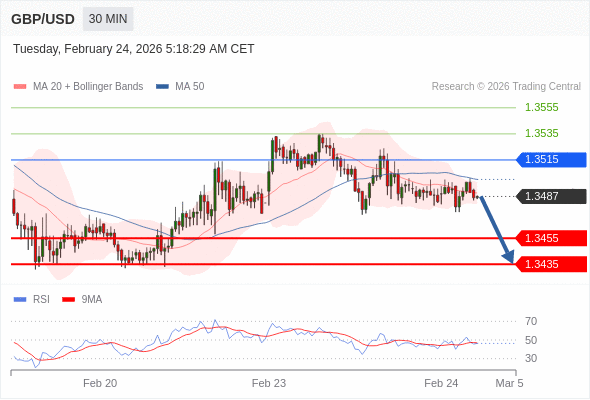 在 1.3515 之下,看跌,目标价位为 1.3455 ,然后为 1.3435 。