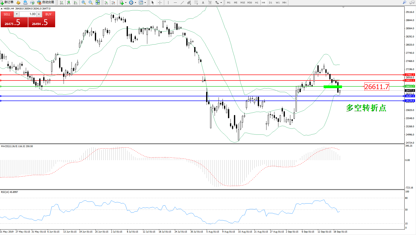 恒指HK50 ——4小时K线图显示: