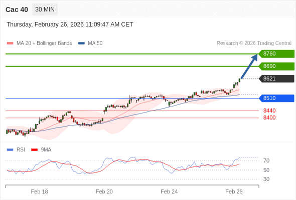 Cac 40 当日内: 目标位为8690。