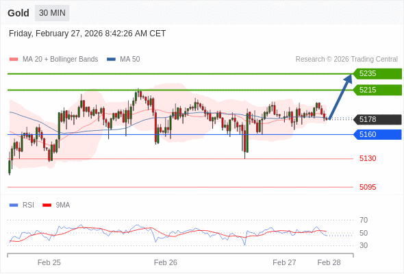 在 5160 之上,看涨,目标价位为 5215 ,然后为 5235 。