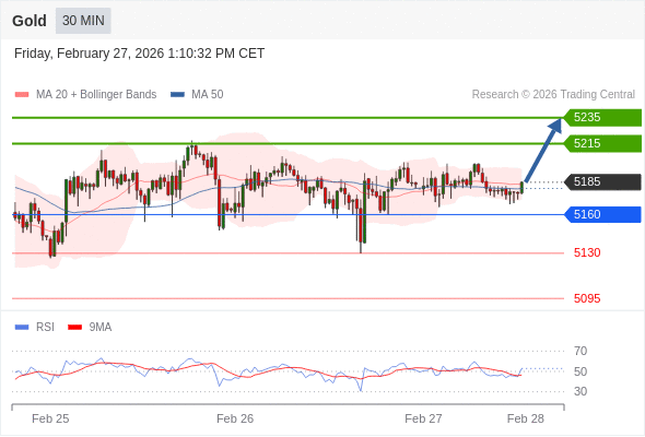 在 5160 之上,看涨,目标价位为 5215 ,然后为 5235 。