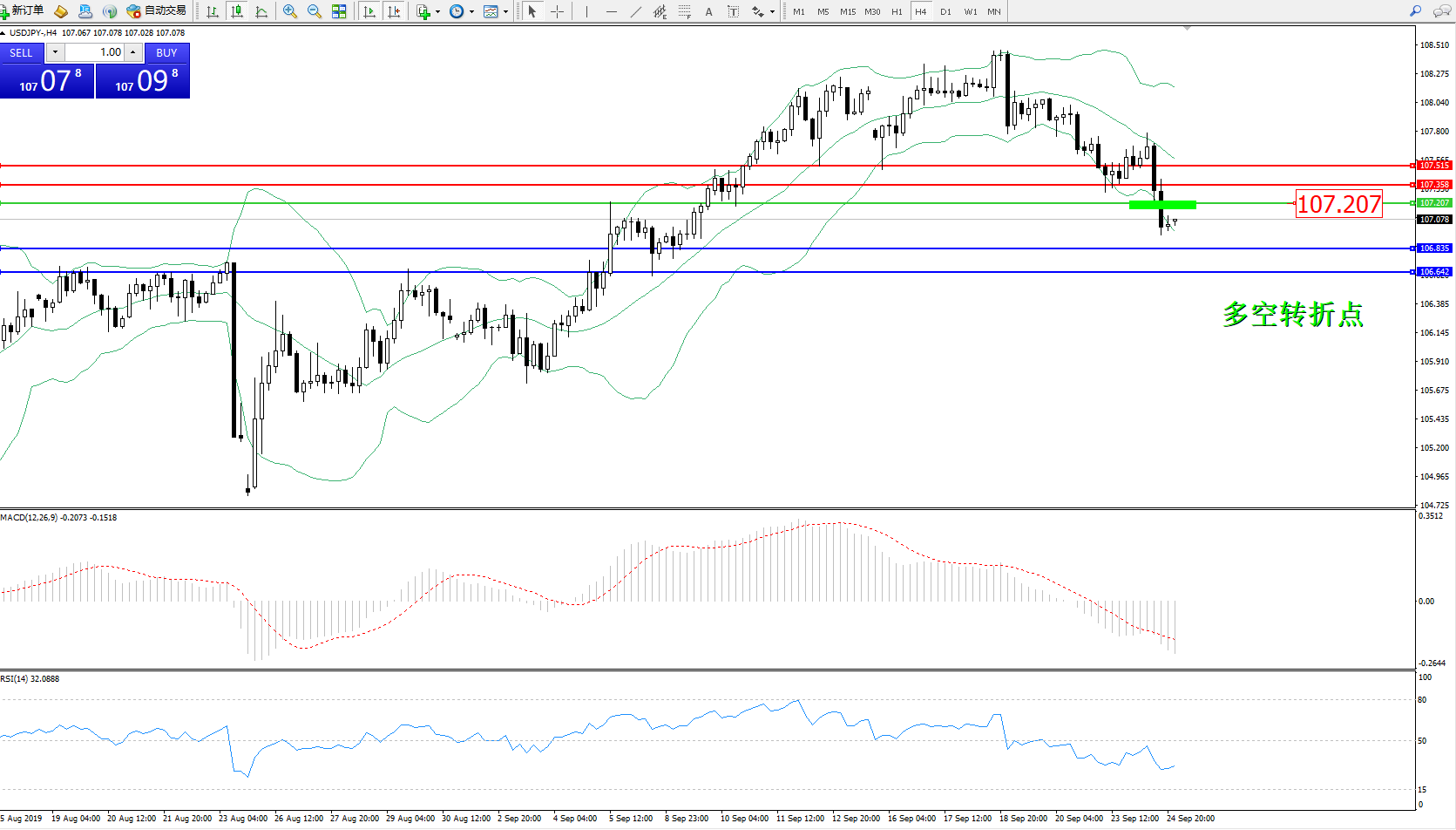 交易策略:107.207下方看跌,目标106.835106.642