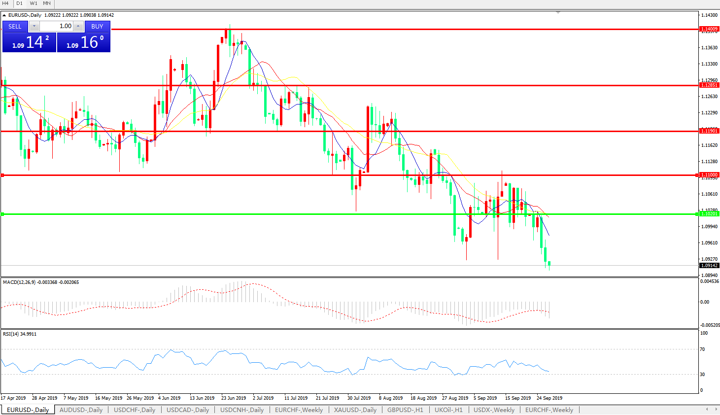 欧元兑美元EURUSD 日线图: