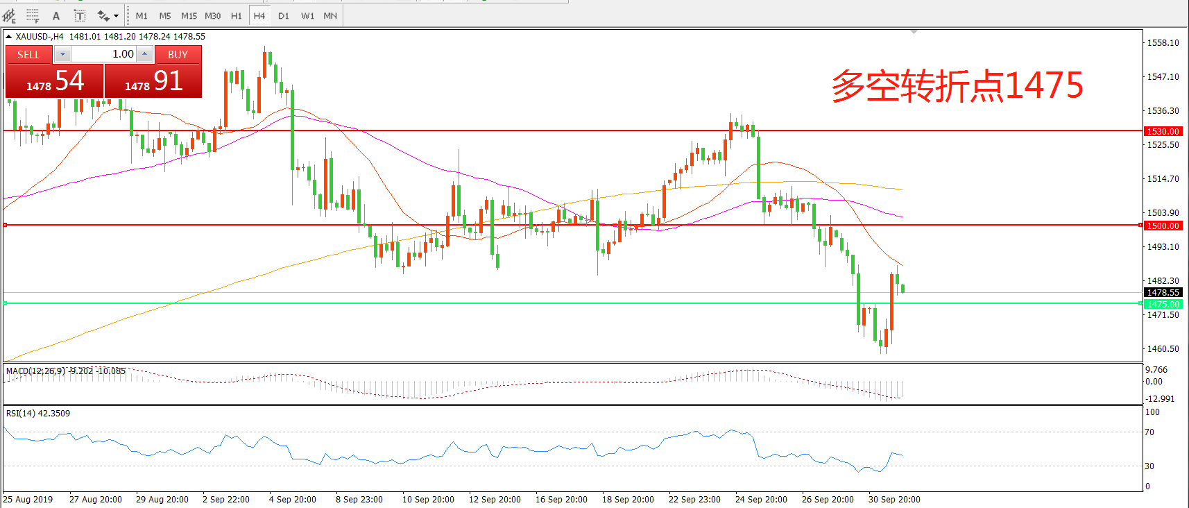 多空转折点:1475.00