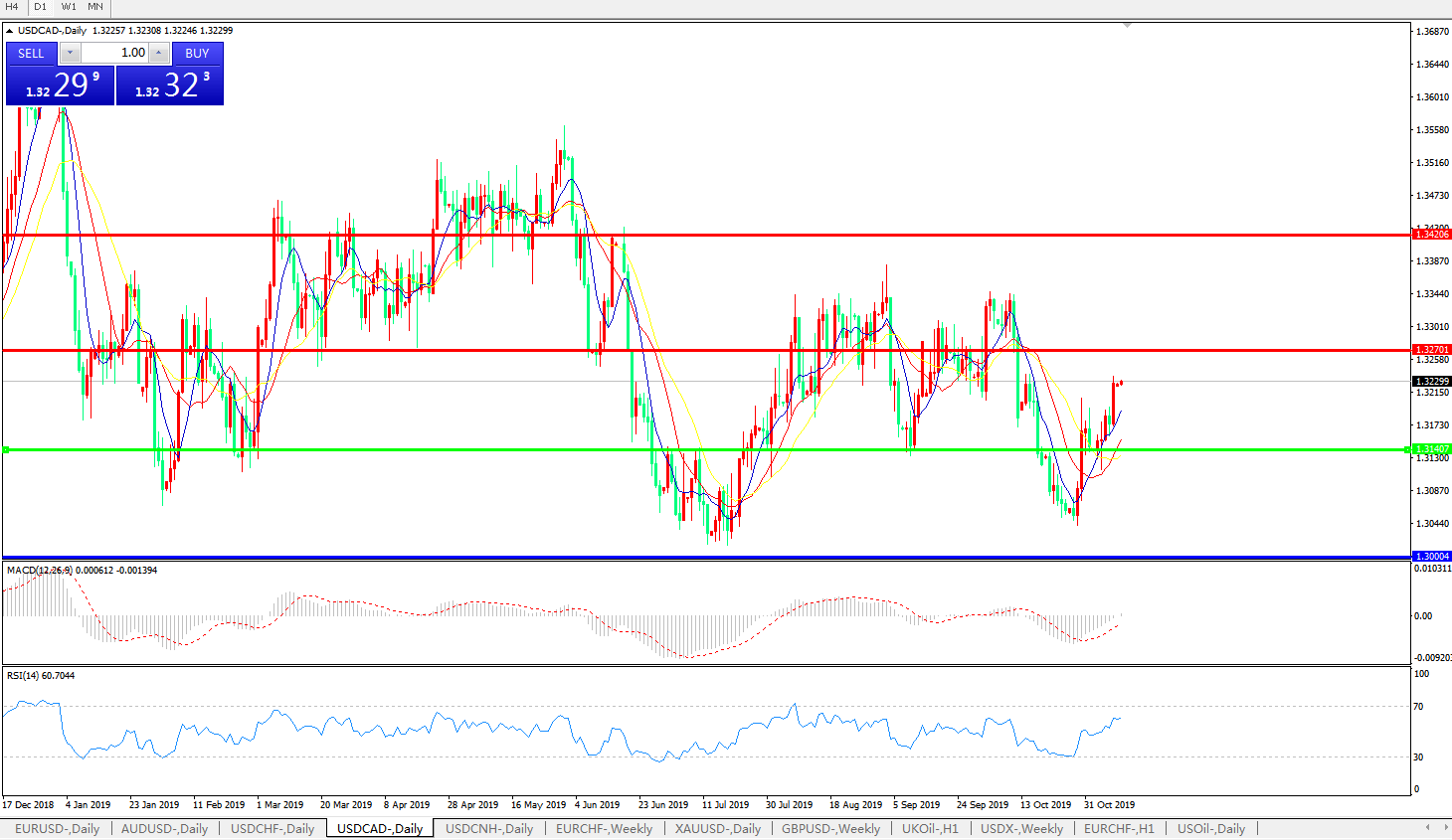 美元兑加元USDCAD    日线图: