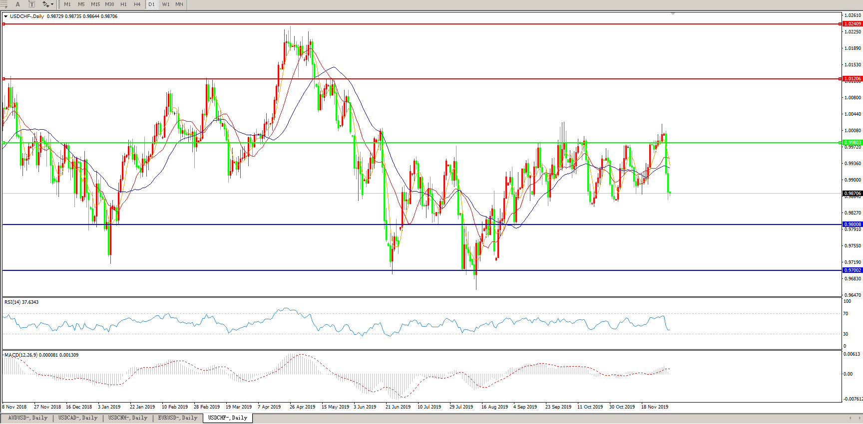 美元兑瑞郎USDCHF 日线图: