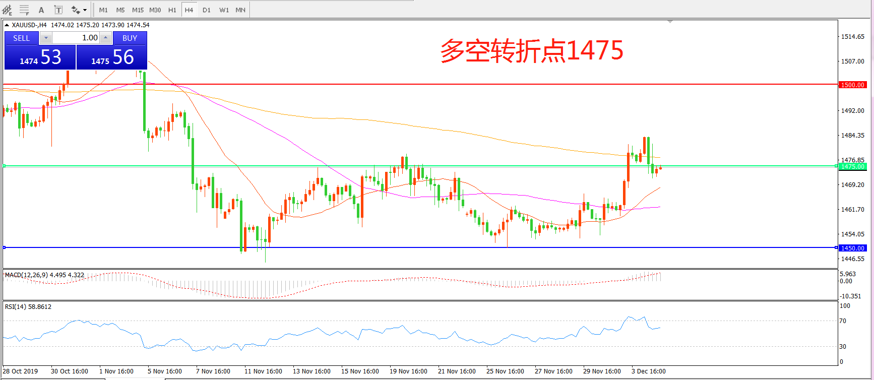 多空转折点:1475.00