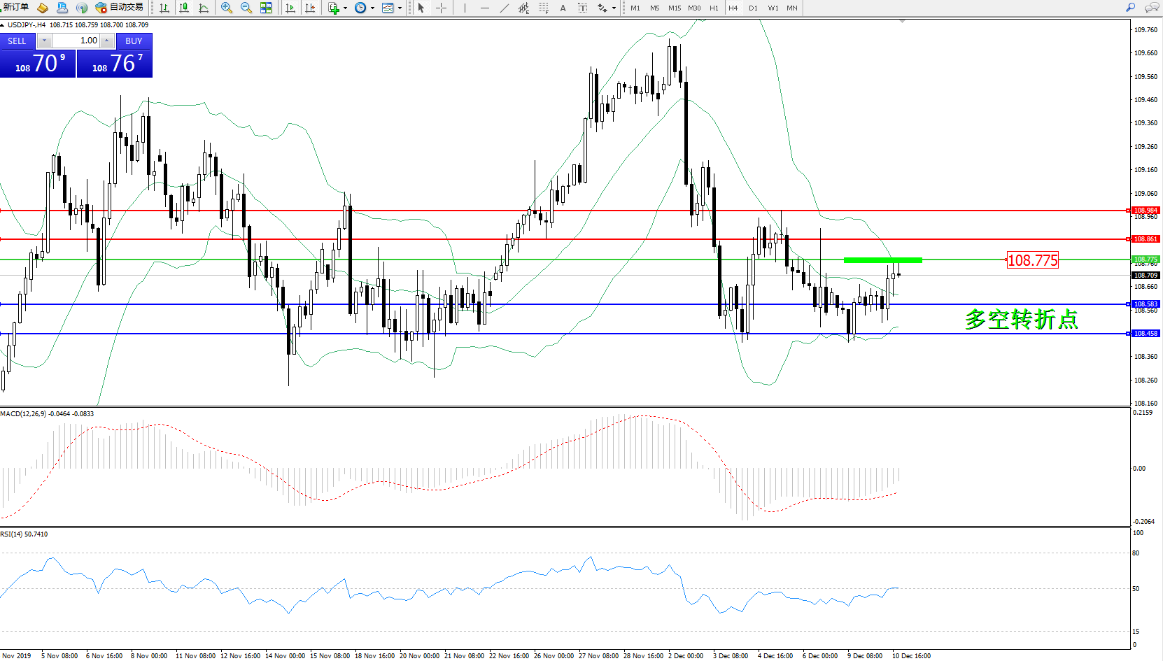 交易策略:108.775下方看跌,目标108.583、108.458