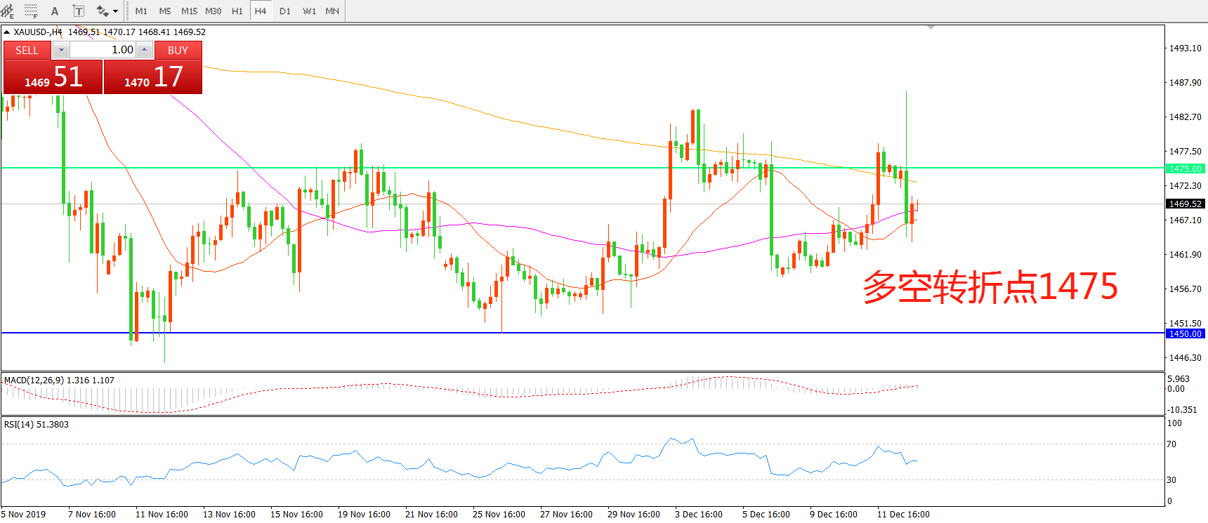 多空转折点:1475.00
