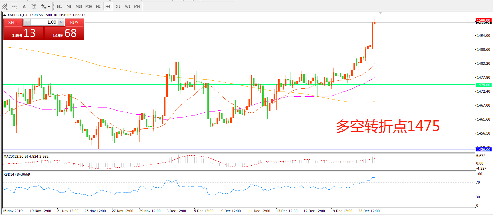 多空转折点:1475.00