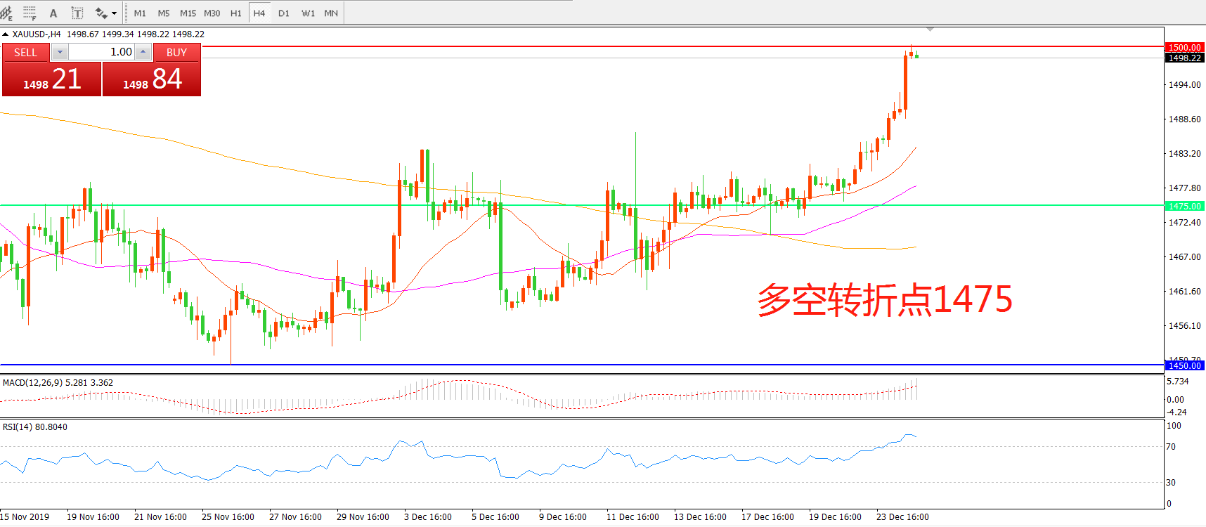 多空转折点:1475.00
