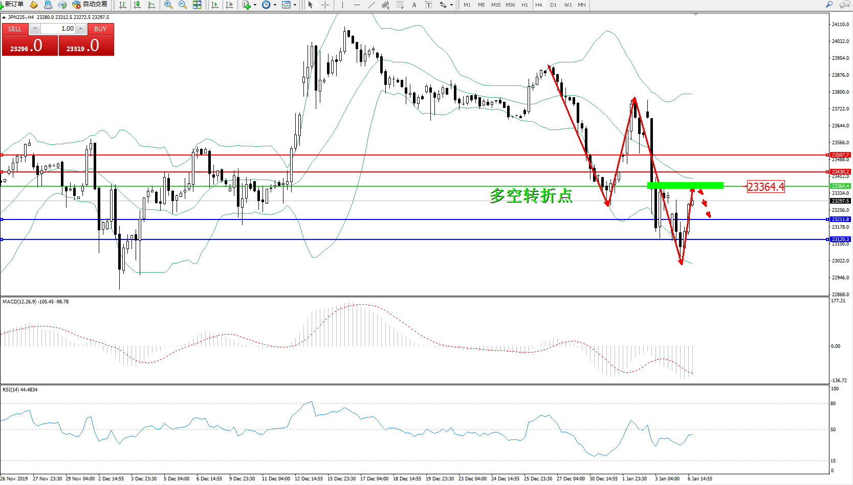 日经225指数1月6日(周一)收盘下跌474.62点,跌幅2.01%,报23182.00点。中东局势剑拔弩张;刺激对避险资产的需求,10年期美国国债收益率连续第三天下滑,日本首相安倍晋三:2020年,社会安全改革是最大的挑战,希望有关各方避免升级中东紧张局势,将继续通过外交努力来稳定中东局势,将透过部署自卫队以确保日本船只在中东地区的安全。