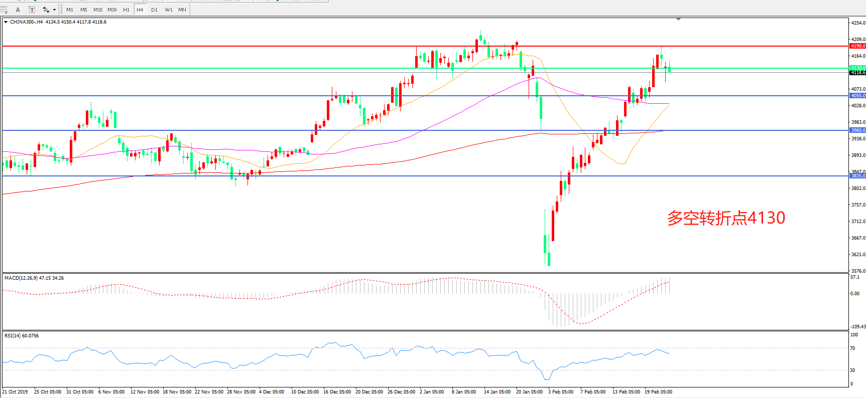 多空转折点:4130.00