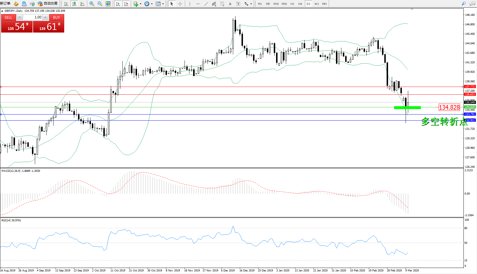 交易策略:134.828上方看涨,目标136.653、137.772