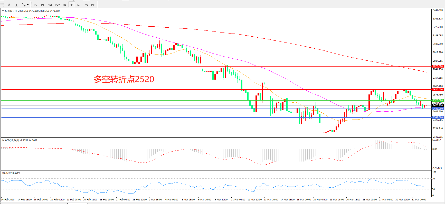 多空转折点:2520.00