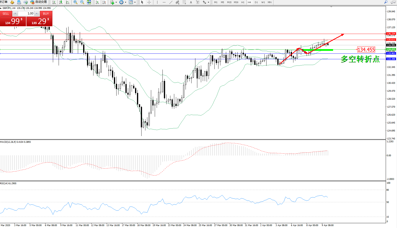 多空转折点:134.455