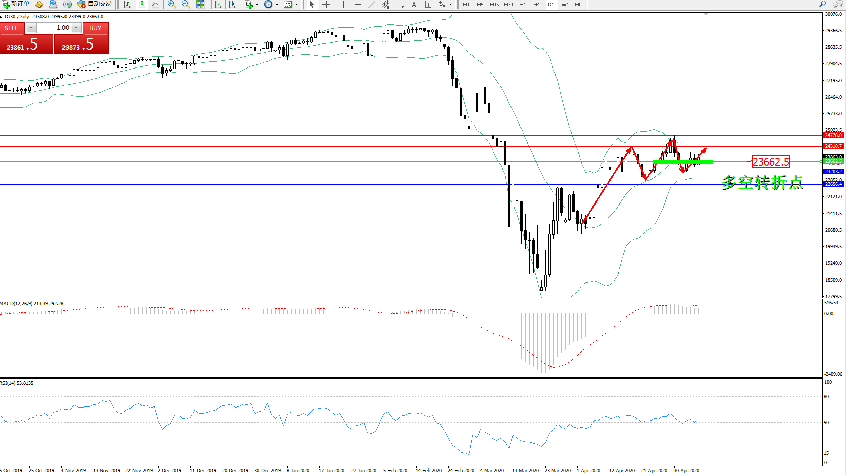道琼斯指数57日(周四)收盘上涨211.30点,涨幅0.89%,报23875.89点。美股三大指数高开后维持涨幅,美国股市周四升至一周高点,投资者预期随着更多地区解封防疫封锁,疫情对经济最严重的破坏或已过去,最新公司业绩报告也支撑了风险偏好。科技股为主的纳斯达克综合指数收复今年以来失地。虽然美国申请失业救济金人数继续保持在历史高位,但较前一周有所下降。美元周四从两周高位回落,因投资者在美国4月非农就业报告公布前锁定美元本周升势带来的获利,2年期国债收益率跌至创纪录低点,之前一系列央行官员的鸽派言论引发了市场对美国负利率的猜测。