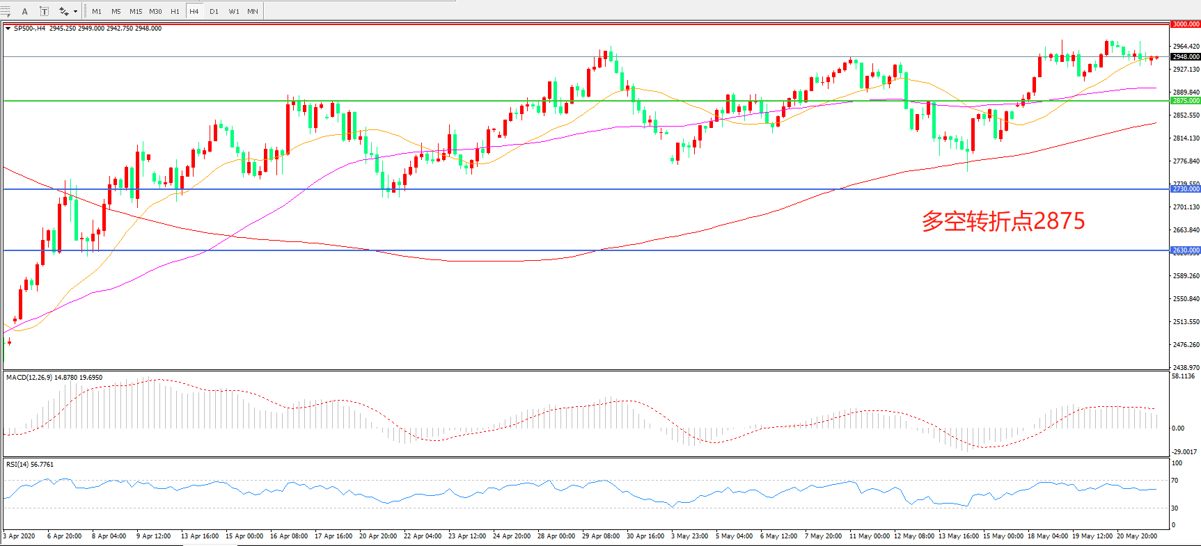 标普500 SP500 4小时图