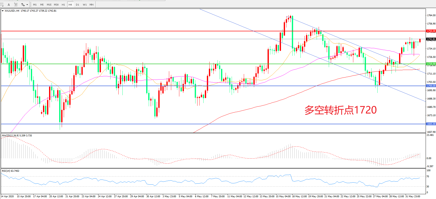 多空转折点:1720.00