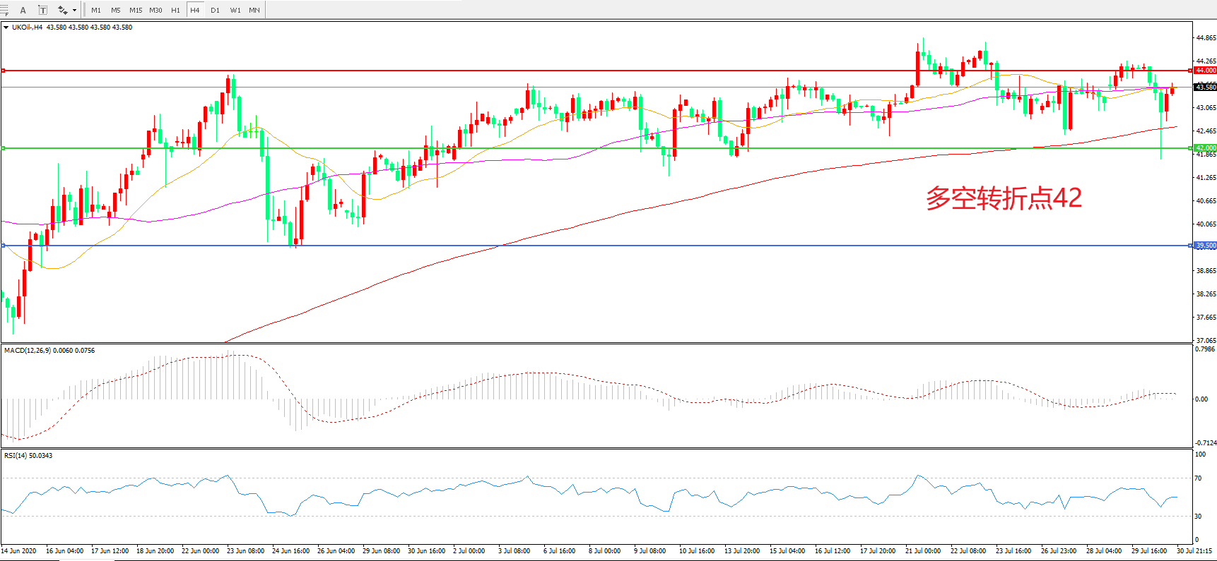 交易策略:  在42.00之上看涨,目标44.00      47.00
