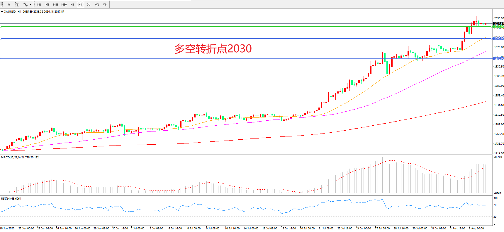 交易策略:在2030.00之上看涨,目标2050.00   2075.00