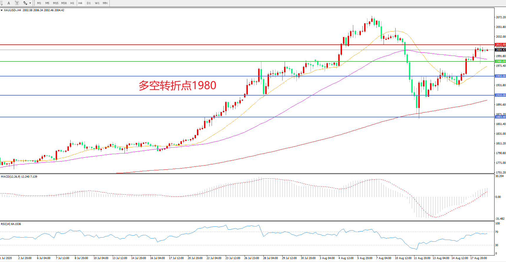 交易策略:在1980.00之上看涨,目标2015.00   2050.00