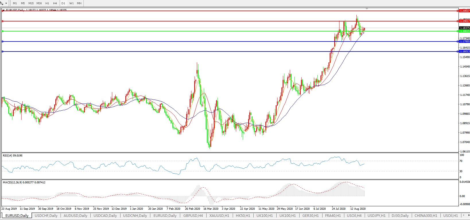 欧元兑美元EURUSD   日线图: