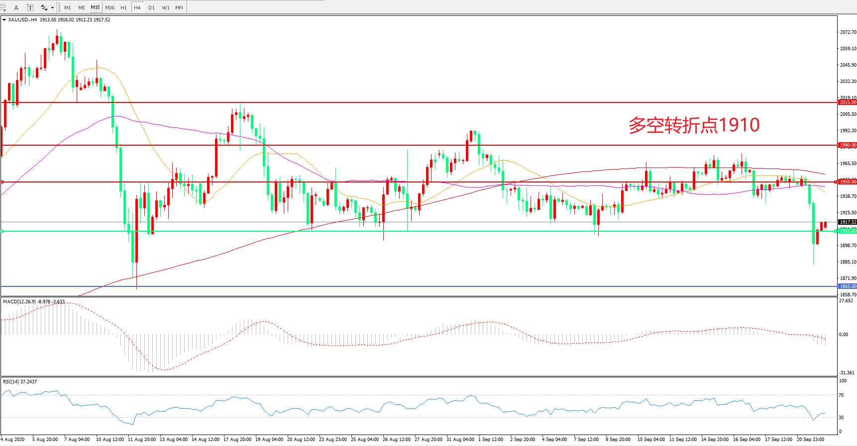 多空转折点:1910.00