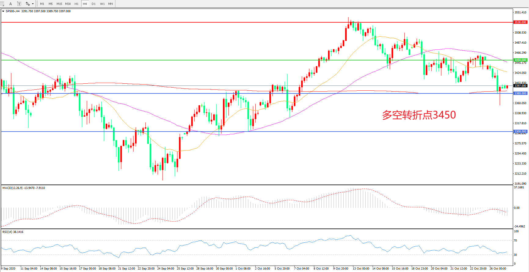 多空转折点:3450.00
