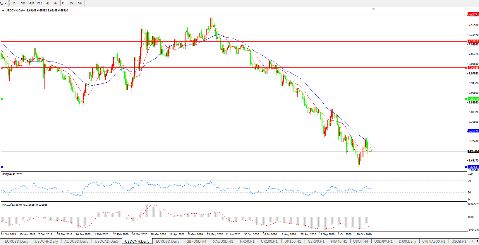 美元兑人民币USDCNH 日线图: