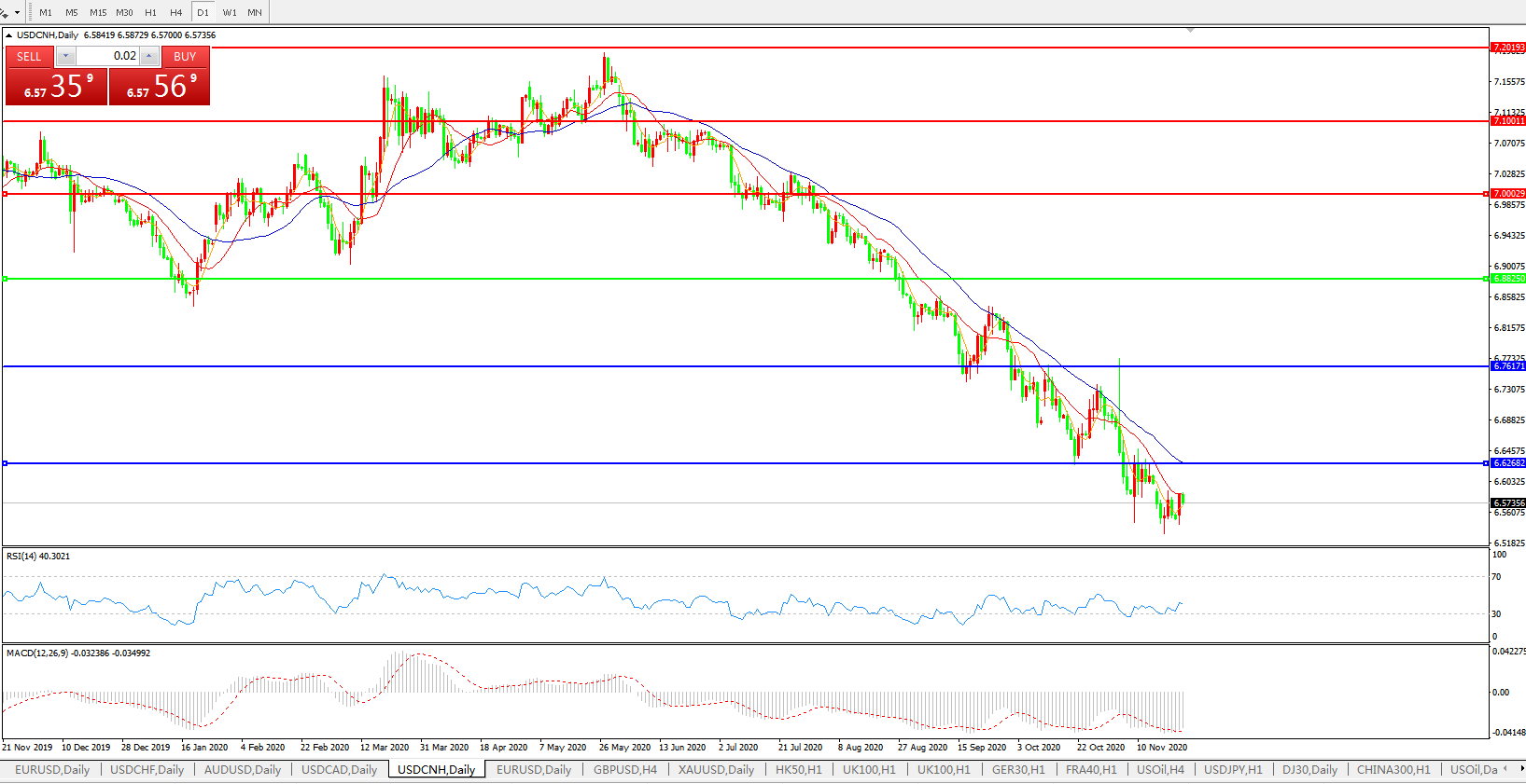 美元兑人民币USDCNH    日线图: