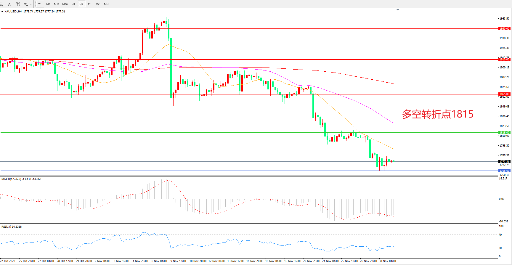 交易策略:在1815.00之下看跌,目标1765.00 1705.00