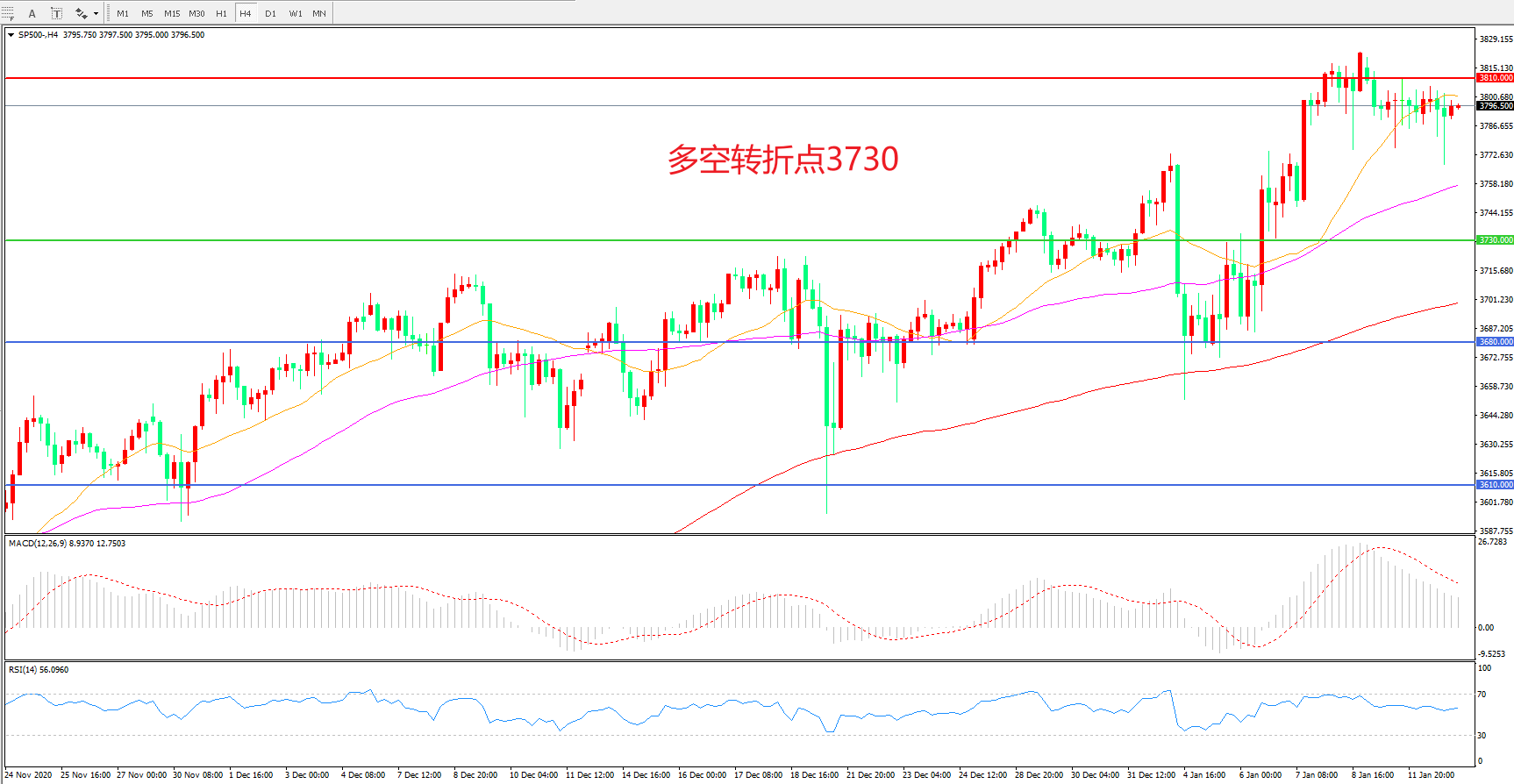 多空转折点:3730.00