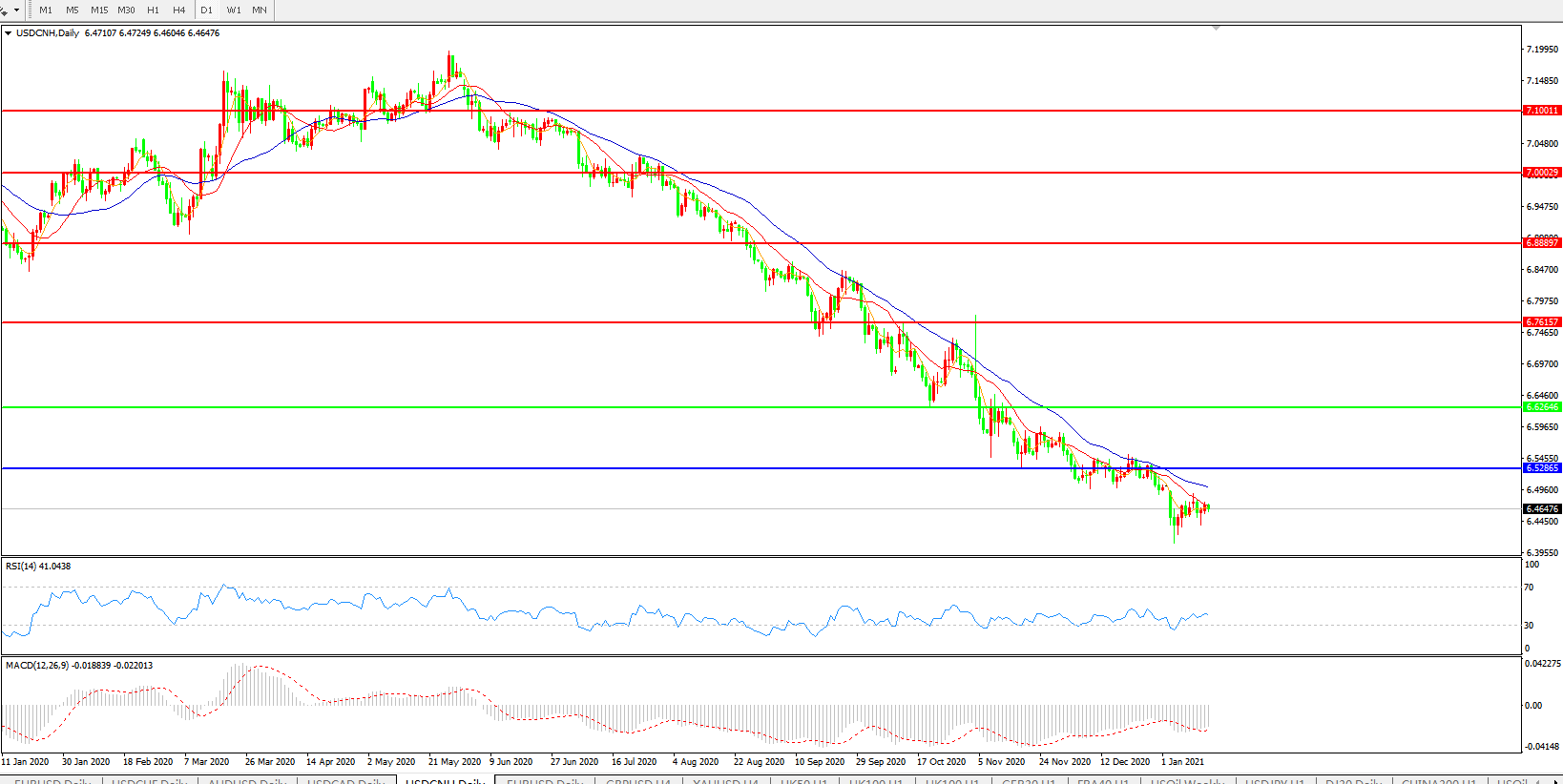美元兑人民币USDCNH 日线图: